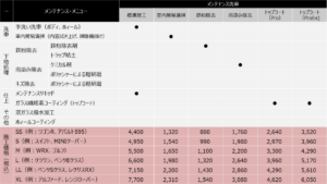 以下の洗車メニューと価格は「リボルト東京」限定です。他の店舗で洗車をされる方は、そちらの店舗で内容をご確認ください。