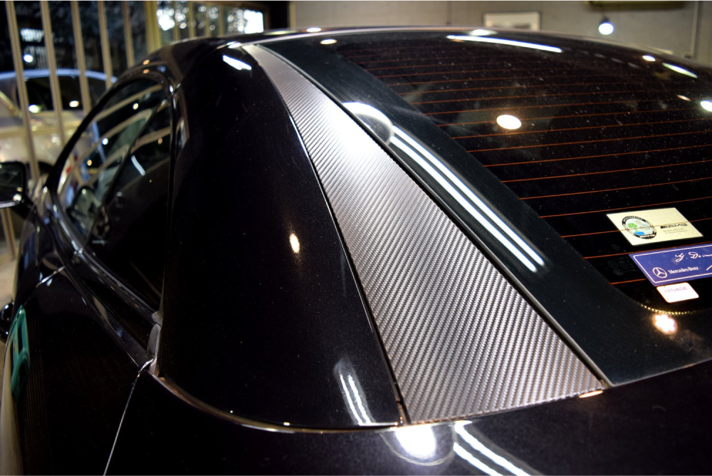 リアピラーへのカーボン調フィルム施工
