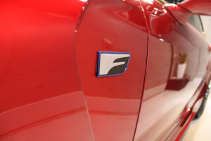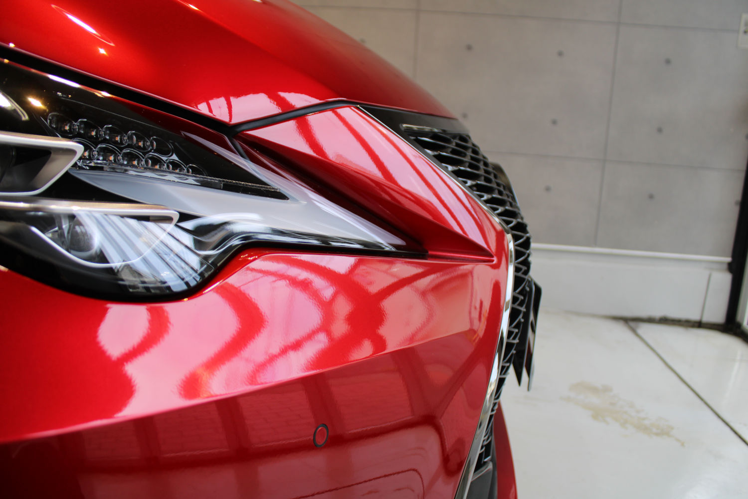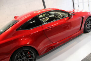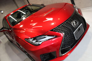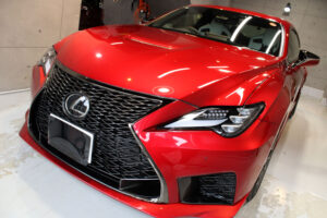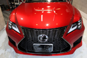 次にコーティング剤を塗布します。セラミックを主成分とした当グループ最高級の【リボルトプロ・エクストリーム】は膜厚も増してより深い濡れたような美しい艶を演出してくれます。耐スリ傷、撥水性能、汚れ軽減の性能も向上しており、ボディ保護力が増しました。触り心地のスベスベ感が最も分かりやすい特徴で、車に乗るとき、ドアを触るたびに実感して頂けると思います。そして、滑りが良くなっている分、汚れも落としやすくなっているのです。