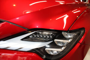 研磨処理後は、脱脂と洗車を行い、十分に乾燥をさせた後にガラスコーティング作業となります。ガラスコーティングの液剤単体での限界硬度は「9H」と言われていますが、ボディ表面のたわみにも追従し、ヒビ割れクラックを防ぐ、硬さ・しなやかさの両方を備えた理想的な硬度の「8H」をリボルトでは採用しております。※(注)硬度が9Hだからといって良いとは限りません。