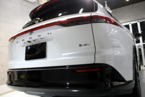 次にコーティング剤を塗布します。セラミックを主成分とした当グループ最高級の【リボルトプロ・エクストリーム】は膜厚も増してより深い濡れたような美しい艶を演出してくれます。耐スリ傷、撥水性能、汚れ軽減の性能も向上しており、ボディ保護力が増しました。触り心地のスベスベ感が最も分かりやすい特徴で、車に乗るとき、ドアを触るたびに実感して頂けると思います。そして、滑りが良くなっている分、汚れも落としやすくなっているのです。