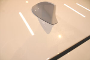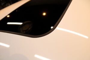 次にコーティング剤を塗布します。セラミックを主成分とした当グループ最高級の【リボルトプロ・エクストリーム】は膜厚も増してより深い濡れたような美しい艶を演出してくれます。耐スリ傷、撥水性能、汚れ軽減の性能も向上しており、ボディ保護力が増しました。触り心地のスベスベ感が最も分かりやすい特徴で、車に乗るとき、ドアを触るたびに実感して頂けると思います。そして、滑りが良くなっている分、汚れも落としやすくなっているのです。