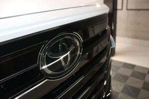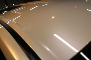 次にコーティング剤を塗布します。セラミックを主成分とした当グループ最高級の【リボルトプロ・エクストリーム】は膜厚も増してより深い濡れたような美しい艶を演出してくれます。耐スリ傷、撥水性能、汚れ軽減の性能も向上しており、ボディ保護力が増しました。触り心地のスベスベ感が最も分かりやすい特徴で、車に乗るとき、ドアを触るたびに実感して頂けると思います。そして、滑りが良くなっている分、汚れも落としやすくなっているのです。