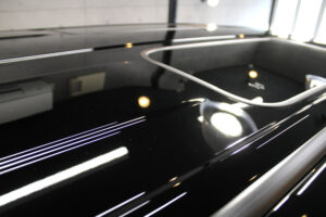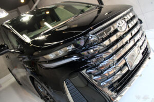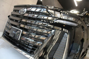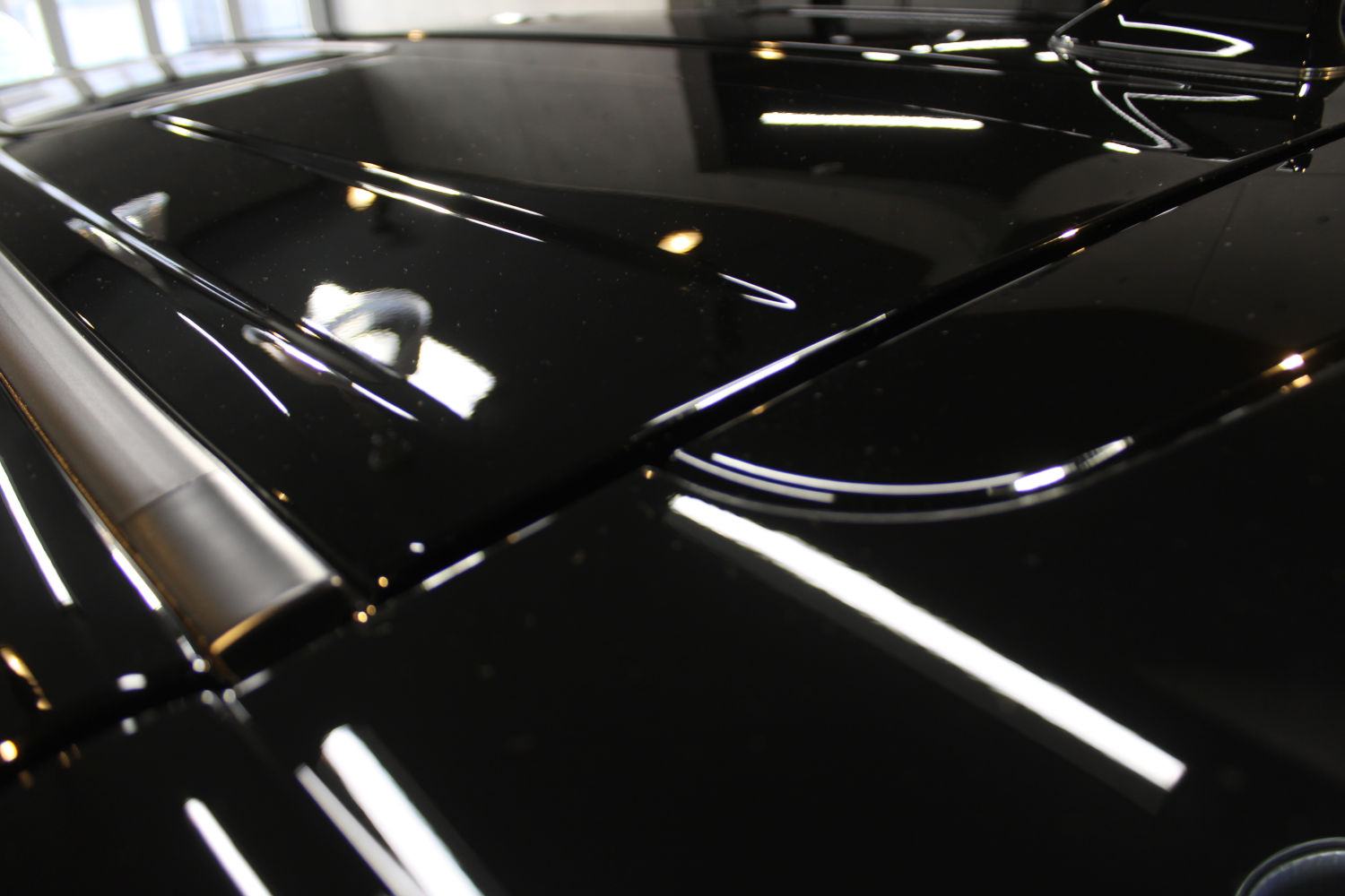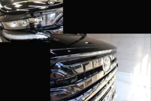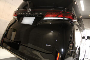 次にコーティング剤を塗布します。セラミックを主成分とした当グループ最高級の【リボルトプロ・エクストリーム】は膜厚も増してより深い濡れたような美しい艶を演出してくれます。耐スリ傷、撥水性能、汚れ軽減の性能も向上しており、ボディ保護力が増しました。触り心地のスベスベ感が最も分かりやすい特徴で、車に乗るとき、ドアを触るたびに実感して頂けると思います。そして、滑りが良くなっている分、汚れも落としやすくなっているのです。