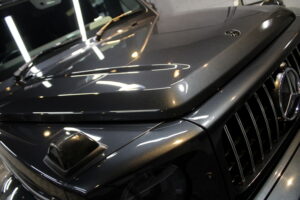 次にコーティング剤を塗布します。セラミックを主成分とした当グループ最高級の【リボルトプロ・エクストリーム】は膜厚も増してより深い濡れたような美しい艶を演出してくれます。耐スリ傷、撥水性能、汚れ軽減の性能も向上しており、ボディ保護力が増しました。触り心地のスベスベ感が最も分かりやすい特徴で、車に乗るとき、ドアを触るたびに実感して頂けると思います。そして、滑りが良くなっている分、汚れも落としやすくなっているのです。