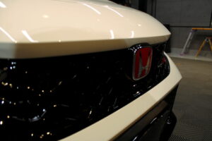 研磨処理後は、脱脂と洗車を行い、十分に乾燥をさせた後にガラスコーティング作業となります。ガラスコーティングの液剤単体での限界硬度は「9H」と言われていますが、ボディ表面のたわみにも追従し、ヒビ割れクラックを防ぐ、硬さ・しなやかさの両方を備えた理想的な硬度の「8H」をリボルトでは採用しております。※(注)硬度が9Hだからといって良いとは限りません。