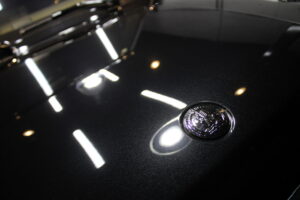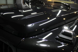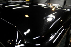 次にコーティング剤を塗布します。セラミックを主成分とした当グループ最高級の【リボルトプロ・エクストリーム】は膜厚も増してより深い濡れたような美しい艶を演出してくれます。耐スリ傷、撥水性能、汚れ軽減の性能も向上しており、ボディ保護力が増しました。触り心地のスベスベ感が最も分かりやすい特徴で、車に乗るとき、ドアを触るたびに実感して頂けると思います。そして、滑りが良くなっている分、汚れも落としやすくなっているのです。
