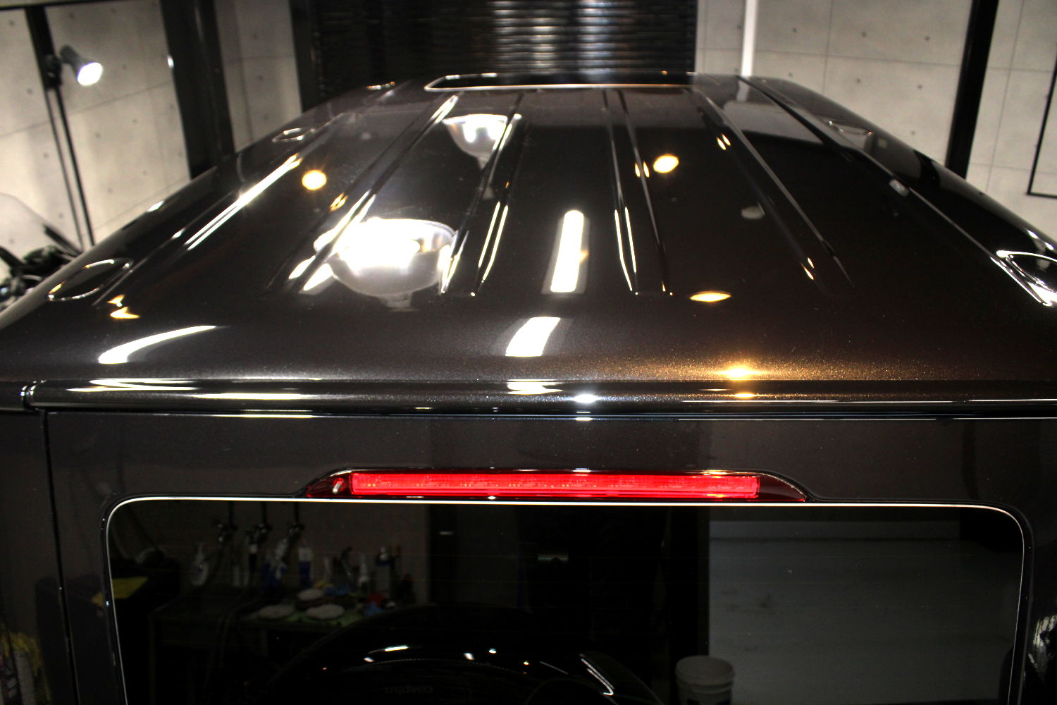 次にコーティング剤を塗布します。セラミックを主成分とした当グループ最高級の【リボルトプロ・エクストリーム】は膜厚も増してより深い濡れたような美しい艶を演出してくれます。耐スリ傷、撥水性能、汚れ軽減の性能も向上しており、ボディ保護力が増しました。触り心地のスベスベ感が最も分かりやすい特徴で、車に乗るとき、ドアを触るたびに実感して頂けると思います。そして、滑りが良くなっている分、汚れも落としやすくなっているのです。