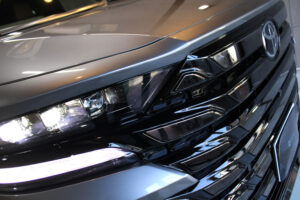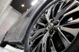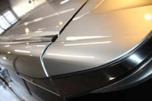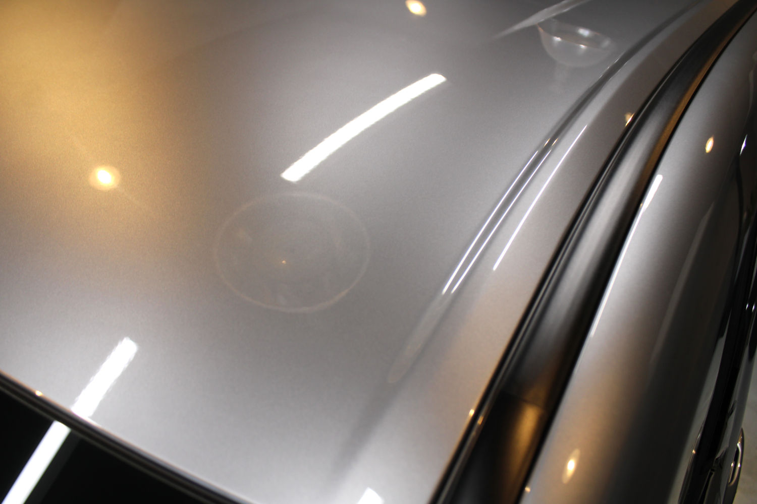 次にコーティング剤を塗布します。セラミックを主成分とした当グループ最高級の【リボルトプロ・エクストリーム】は膜厚も増してより深い濡れたような美しい艶を演出してくれます。耐スリ傷、撥水性能、汚れ軽減の性能も向上しており、ボディ保護力が増しました。触り心地のスベスベ感が最も分かりやすい特徴で、車に乗るとき、ドアを触るたびに実感して頂けると思います。そして、滑りが良くなっている分、汚れも落としやすくなっているのです。