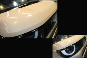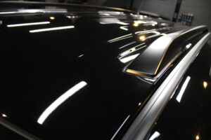 次にコーティング剤を塗布します。セラミックを主成分とした当グループ最高級の【リボルトプロ・エクストリーム】は膜厚も増してより深い濡れたような美しい艶を演出してくれます。耐スリ傷、撥水性能、汚れ軽減の性能も向上しており、ボディ保護力が増しました。触り心地のスベスベ感が最も分かりやすい特徴で、車に乗るとき、ドアを触るたびに実感して頂けると思います。そして、滑りが良くなっている分、汚れも落としやすくなっているのです。