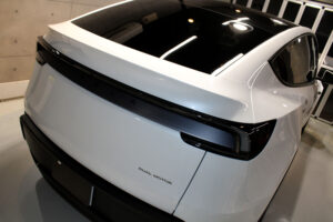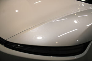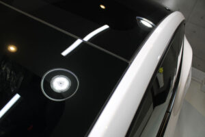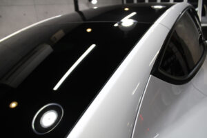 次にコーティング剤を塗布します。セラミックを主成分とした当グループ最高級の【リボルトプロ・エクストリーム】は膜厚も増してより深い濡れたような美しい艶を演出してくれます。耐スリ傷、撥水性能、汚れ軽減の性能も向上しており、ボディ保護力が増しました。触り心地のスベスベ感が最も分かりやすい特徴で、車に乗るとき、ドアを触るたびに実感して頂けると思います。そして、滑りが良くなっている分、汚れも落としやすくなっているのです。