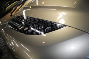 次にコーティング剤を塗布します。セラミックを主成分とした当グループ最高級の【リボルトプロ・エクストリーム】は膜厚も増してより深い濡れたような美しい艶を演出してくれます。耐スリ傷、撥水性能、汚れ軽減の性能も向上しており、ボディ保護力が増しました。触り心地のスベスベ感が最も分かりやすい特徴で、車に乗るとき、ドアを触るたびに実感して頂けると思います。そして、滑りが良くなっている分、汚れも落としやすくなっているのです。