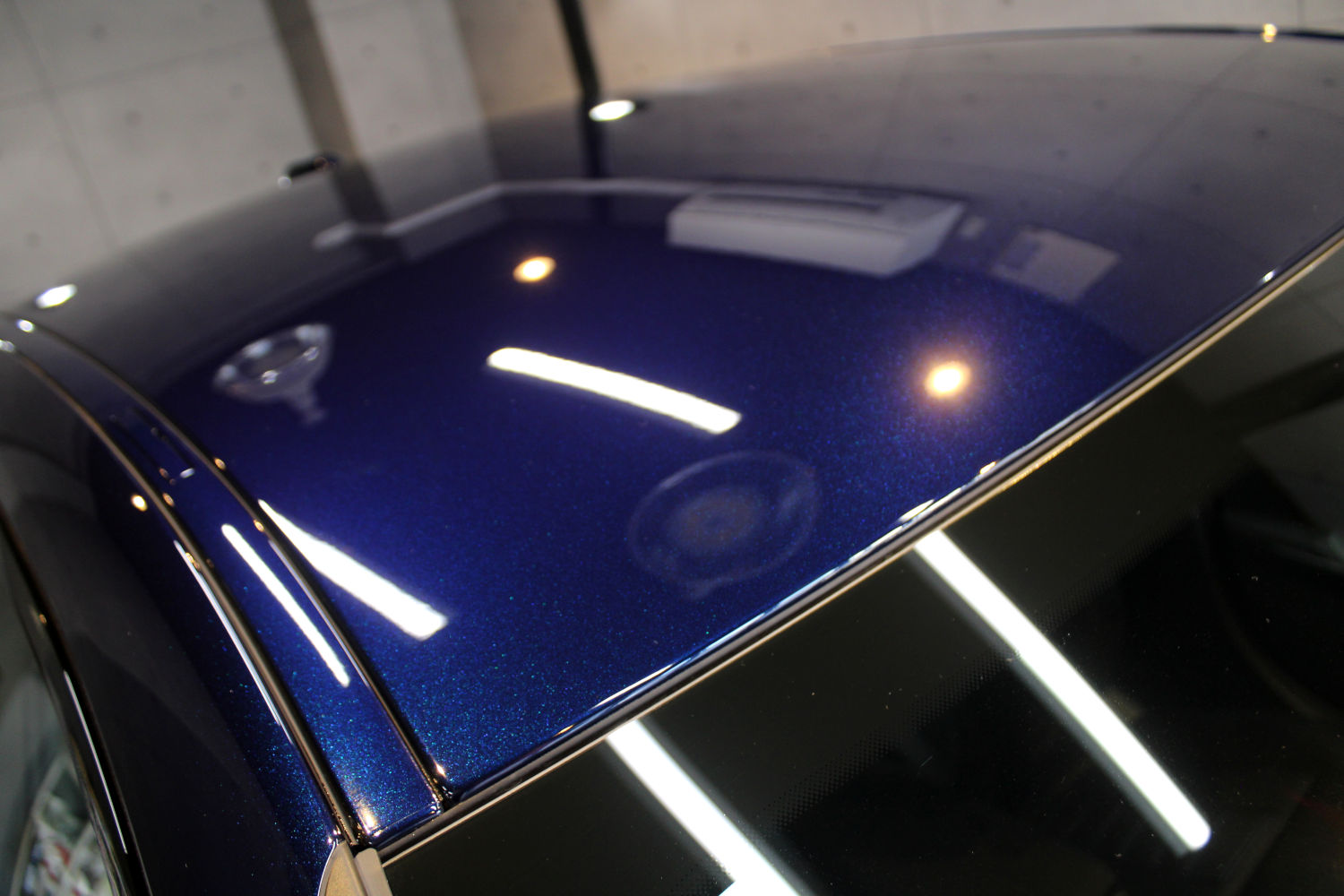 研磨処理後は、脱脂と洗車を行い、十分に乾燥をさせた後にガラスコーティング作業となります。ガラスコーティングの液剤単体での限界硬度は「9H」と言われていま、ボディ表面のたわみにも追従し、ヒビ割れクラックを防ぐ、硬さ・しなやかさの両方を備えた理想的な硬度の「8H」となります。